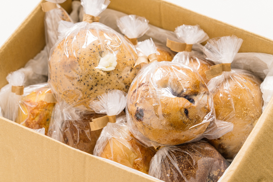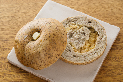 主な原材料:小麦粉(国内製造)、全粒粉、ライ麦粉、砂糖、チーズ、フライドオニオン、白ごま、マヨネーズ、明太子、かつお節、とうもろこし、ウィンナーソーセージ、アーモンド、チョコレート/乳化剤、セルロース、安定剤(増粘多糖類) 他 他 アレルゲン:小麦・乳成分・ごま・アーモンド・豚肉・さけ・ゼラチン・大豆・りんご・大豆・卵・くるみ・バナナ 他 ベーグルプレーン(商品一例):小麦粉(国内製造)、ライ麦粉、塩、ドライイースト/乳化剤、(一部に小麦をふくむ)
