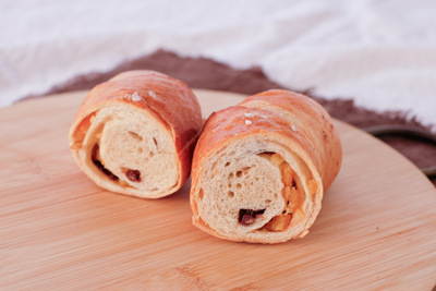自然解凍後、あらかじめ予熱しておいたオーブンやトースターで温めてお召し上がりください。(※気温が上がってくる夏場は一晩冷蔵庫で解凍してください) パン全体に霧吹きなどで軽く水をかけてからトースターで3分~4分ほど加熱するとさっくり、もっちり出来たてのようになりおいしく召し上がれます。 厚みのあるパンは表面がこげやすいのでアルミホイルをかけて加熱してください。