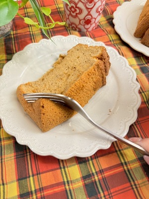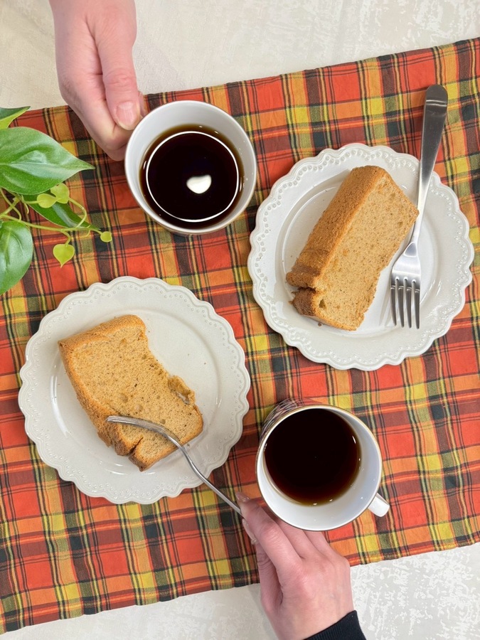 🌽米粉のコーンパン岩塩添え:2つ (約底4cm×高さ5cm×トップの直径6cm) ☕️米粉の薬膳チャイシフォン:4切れ (高さ約11cm・横約6cm)