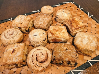 24個入ります。(ざくざくスコーン12個+塩麹マフィン12個) スコーンだけの場合も24個になります。