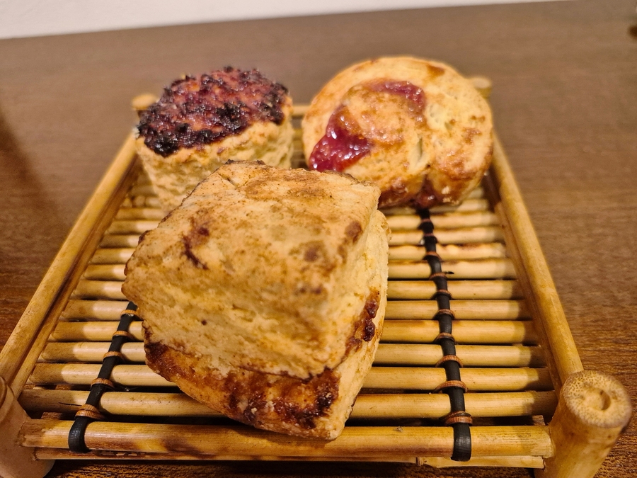 自然解凍後、スコーンはオーブンやトースター、マフィンは電子レンジで温めてお召し上がりください。(※気温が上がってくる夏場は一晩冷蔵庫で解凍してください) スコーンはざくざく食感、マフィンはしっとりふんわりと出来たてのようになり美味しく召し上がれます。