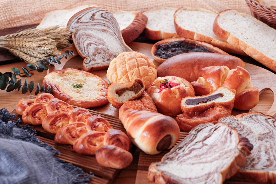 主な原材料:小麦粉、ショートニング、マーガリン、植物油脂、脱脂粉乳、砂糖、塩、イーストフード 他 アレルゲン(8品目):小麦・卵・乳成分・くるみ・落花生 ベーコンエピ(商品一例):小麦粉、ベーコン、チーズ、ショートニング、脱脂粉乳、砂糖、塩、イースト、黒胡椒、卵/加工澱粉、リン酸塩、調味料、増粘多糖類、くん液、酸化防止剤、発色剤、カルミン酸色素、セルロース、イーストフード、乳化剤 ※アレルギーがご心配な方はご遠慮下さい。 ※各パンに原材料表示シールを貼付します。