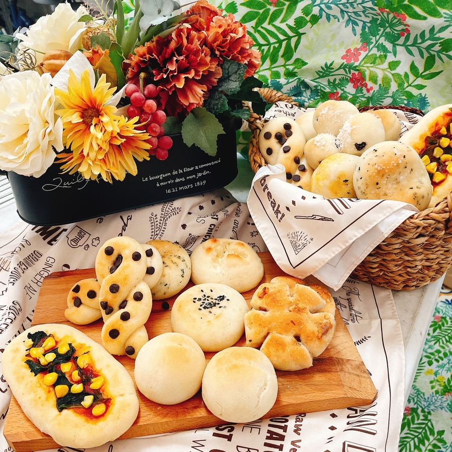 10種類/各1個ずつのパンが入ります。 真っ白パン バジル&ソルト あんパン ポテサラパン チョコパン ピザパン カレーパン レーズンパン ウインナーパン くるみパン