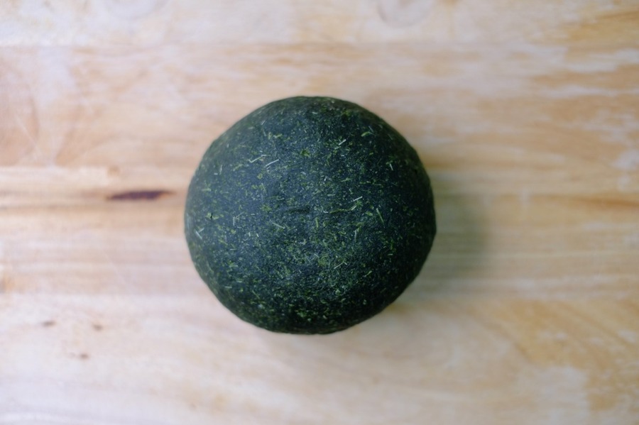 中まで”ぎっしりずっしり”よもぎが入っています。
