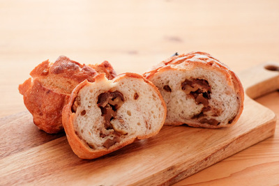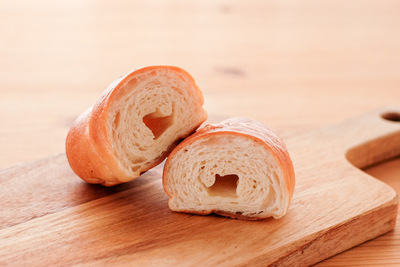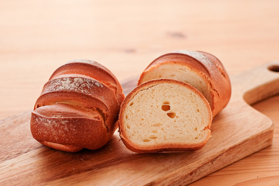 アルミホイルに包んでトースターで3~5分焼いてください。 外は「カリッ」中は「モチッ」と焼き立てパンが味わえます。