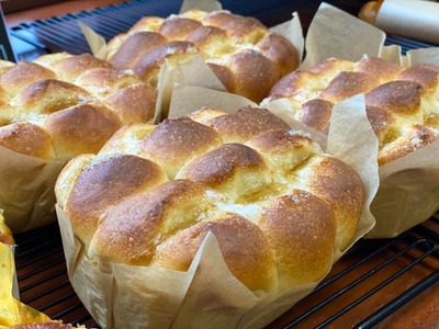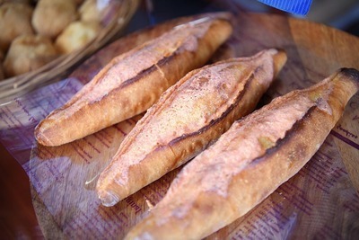 自然解凍後、霧吹きや水道などで水分をサッと含ませてから、予熱したオーブンやトースターで焼き直すと焼きたての様に美味しいです。