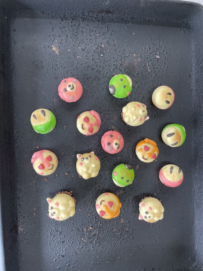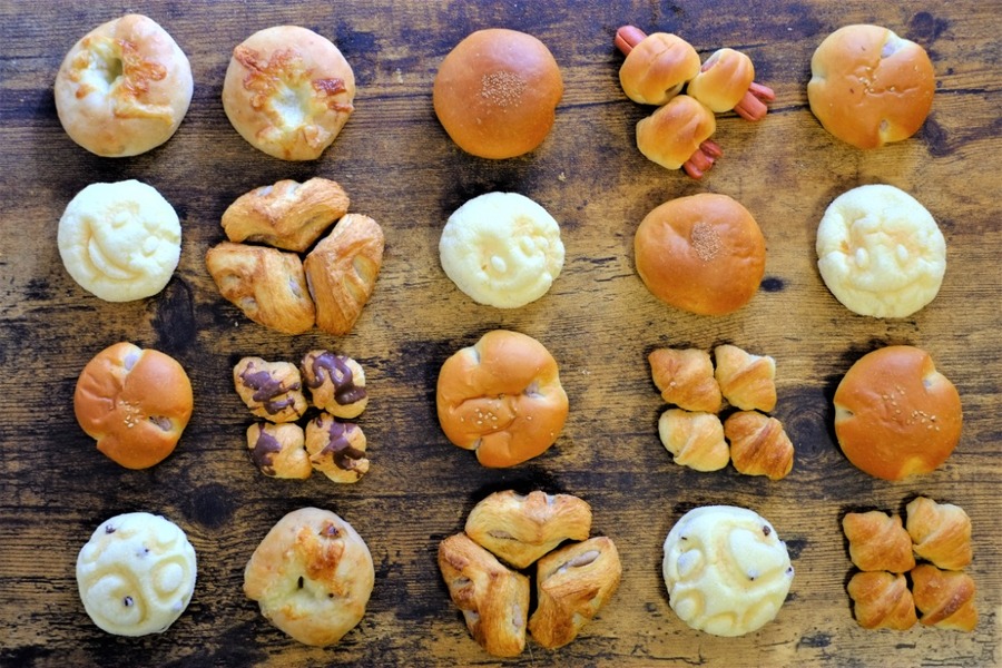 同じ包装袋に数個お入れして35個ほど入ります。いろんな種類が入ったセットです。 ※パンの大きさにより前後します ミニパンの大きさは通常のパンの1/3程度です。 キャラパンなどは大きいサイズ、小さいサイズも入っております。