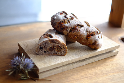 主な原材料:小麦粉(北海道産)、塩(フランス産)、天然酵母(小麦含む) その他商品によって 有機ドライいちじく(トルコ産)、有機くるみ(アメリカ産)、有機カランツ(アメリカ産)、有機レーズン(アメリカ産) ※一部に小麦・くるみ を含む