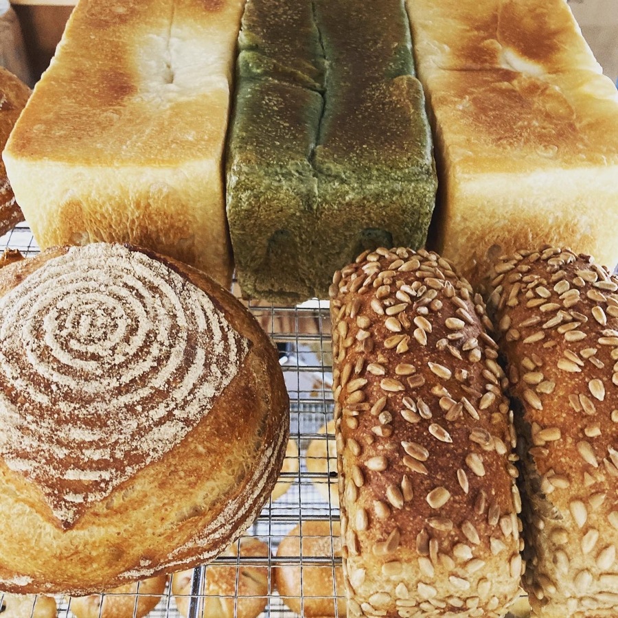 国産小麦、全粒粉、ライ麦、米粉、オーガニックオートミール、オーガニックコーンミール、コーンスターチ、甜菜糖、黒糖、粗塩、グランドの塩、ホシノ天然酵母、ルヴァン種、サワー種、菜種油、米油、太白胡麻油、オリーブオイル、ココナッツオイル、パーム油、ネグリタラム酒、バニラオイル、アルミフリーベーキングパウダー、小豆、抹茶、オーガニックココア、オーガニックシナモン、レーズン、胡桃、カシューナッツ、ひまわりの種、アーモンド、アーモンドパウダー、梅酢、マスタード、メープルシロップ、アガベシロップ、ゴマ、ケシの実 などをパンの材料に使用しております。 ●バターや卵、牛乳や白砂糖 は不使用です。 アレルギー物質 【小麦・胡桃・ゴマ・大豆 】使用しております。 全粒粉30%入り食パン(商品一例):北海道産小麦、有機全粒粉、有機豆乳、甜菜糖、太白ごま油、塩、ホシノ天然酵母