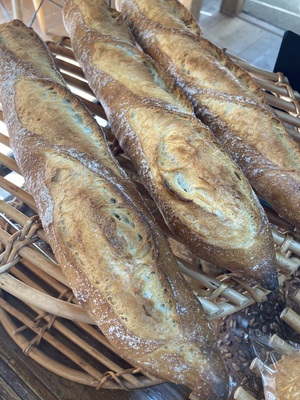 自然解凍後、あらかじめ余熱しておいたオーブンやトースターで温めてお召し上がりください。(※気温が上がってくる夏場は一晩冷蔵庫で解凍してください) パン全体に霧吹きなどで軽く水をかけてからトースターで3分~4分ほど加熱するとさっくり、もっちり出来たてのようになり美味しく召し上がれます。