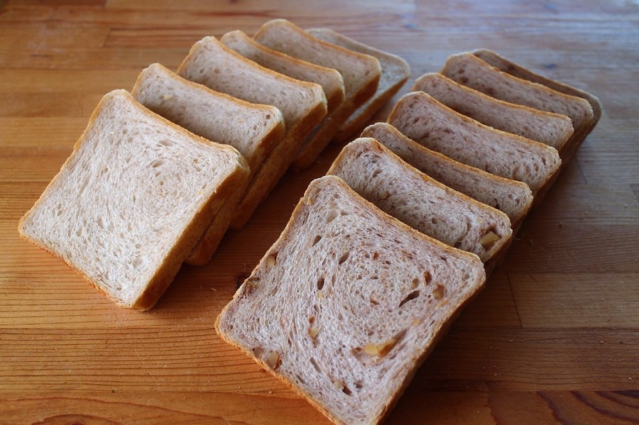主な原材料:北海道産小麦、北海道産小麦全粒粉、北海道産小麦ふすま、オーガニックくるみ、あこ自然培養酵母、天塩 ※個々に記載しています。そちらをご確認ください。 全粒粉食パン(商品一例):北海道産小麦粉、北海道産小麦全粒粉、小麦ふすま、天然酵母、天塩 アレルゲン:小麦・くるみ