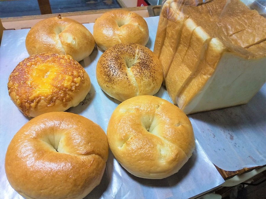 ●六甲食パン 1斤 ●6種のベーグル(プレーン、チョコ、くるみ餡、 オレンジ&クリームチーズ、チェダーオンチェダー、ウィンナー&チーズ)