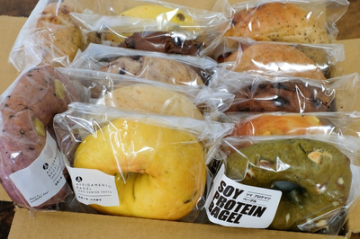 12個のベーグルが入ります。 1個当たり300円以上のベーグルです。 ※ロスパンとなりますので、プロテインベーグルは入っていない場合もございますので、ご了承ください。