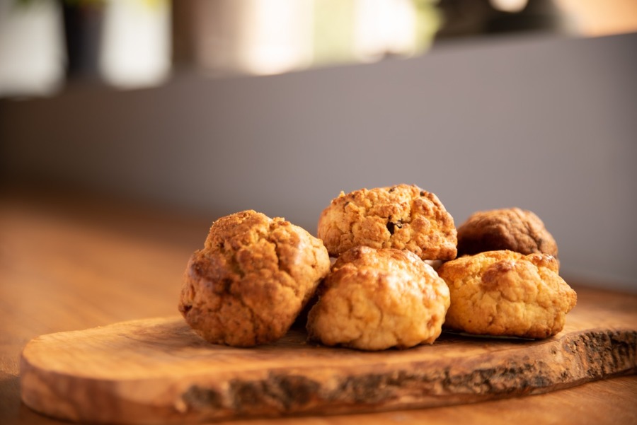 主な原材料:小麦粉 バター 生クリーム キビ糖 牛乳 卵黄 ベーキングパウダー (原材料の一部に乳、卵を含む) チョコレート カシューナッツ アールグレイ 米粉