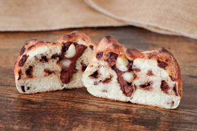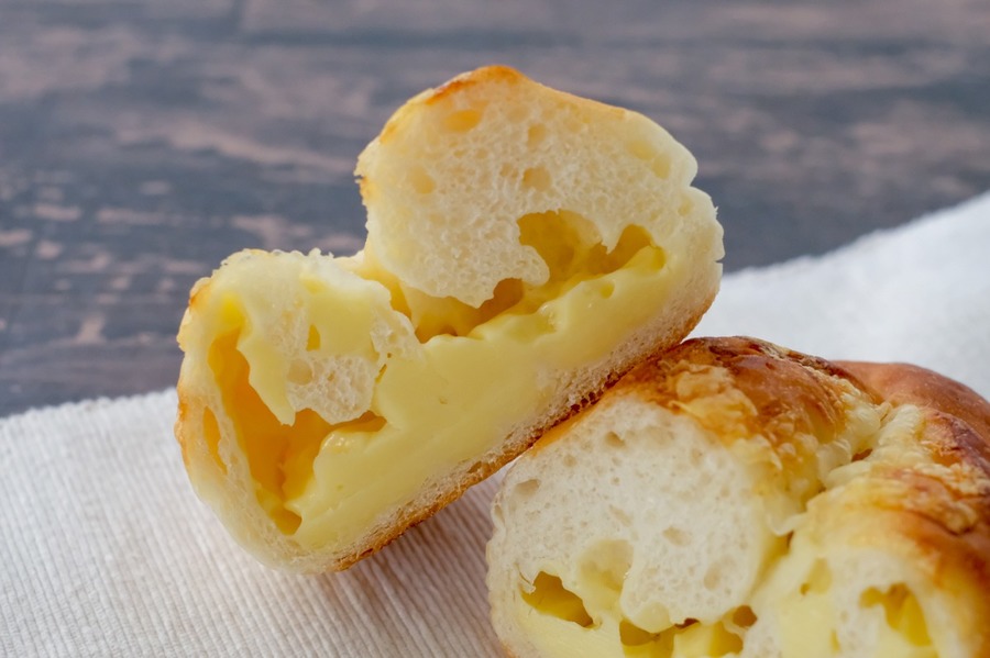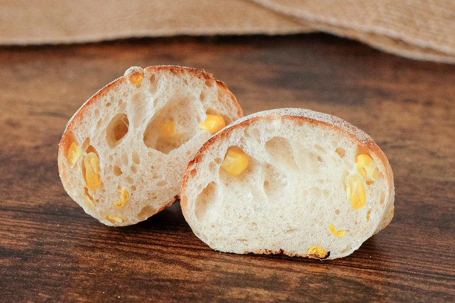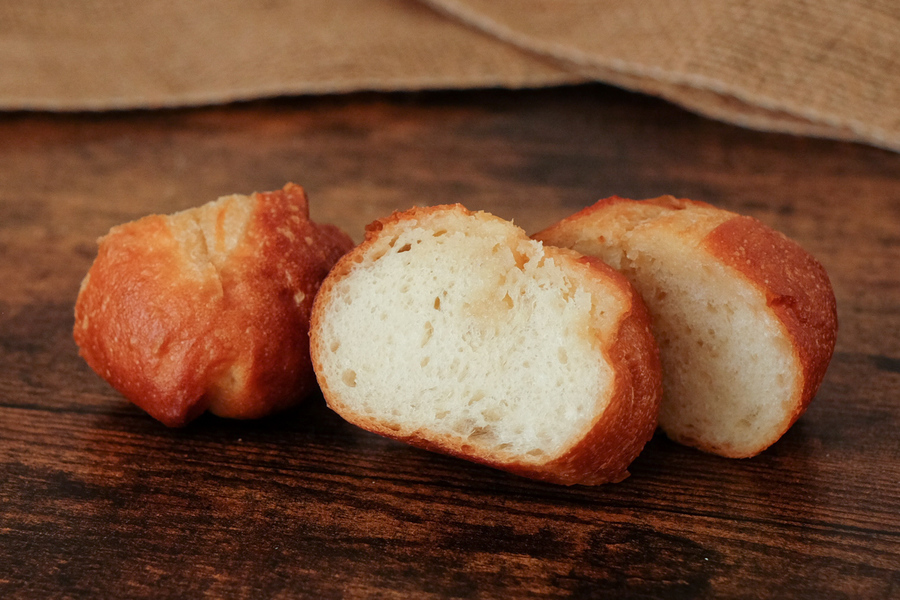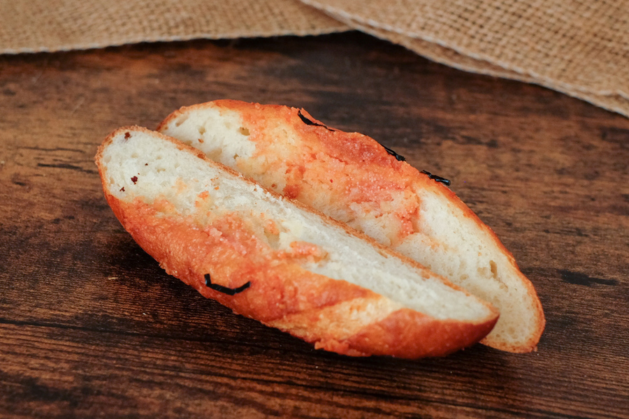 自然解凍後、あらかじめ余熱しておいたオーブンやトースターで温めてお召し上がりください。 パン全体に霧吹きなどで軽く水をかけてからトースターで3分~4分ほど加熱するとさっくり、もっちり出来たてのようになり美味しく召し上がれます。 厚みのあるパンは表面がこげやすいのでアルミホイルをかけて加熱してください。