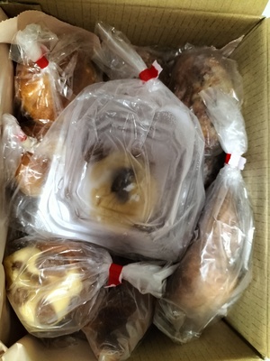 思ったより早く届けて頂きありがとうございます。惣菜系と菓子パンが半々という内容でした。早速カレーパンは食べてしまいました。