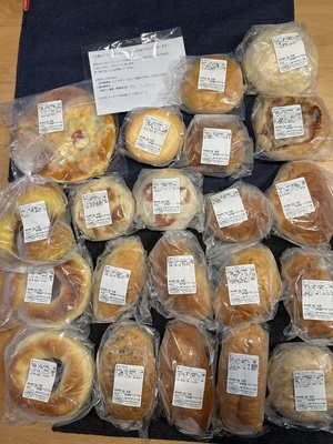 殆ど被りなく20個入っていました。ベーグルがリベイクするともちふわカリカリなのですが新潟県産のゆきちからという小麦粉のせいか噛めば噛むほど甘みが出てとてもジューシーな生地でした。すごく美味しいです。あとチョココルネが入っていたのですが中のチョコクリームがビターで濃厚なのにホイップみたいに軽くて、一見よくあるパンのようですごく個性のあるチョココルネで感動しました。20個チョココルネにしてもらいたいくらい美味しい!!また利用させていただきます。ありがとうございました。