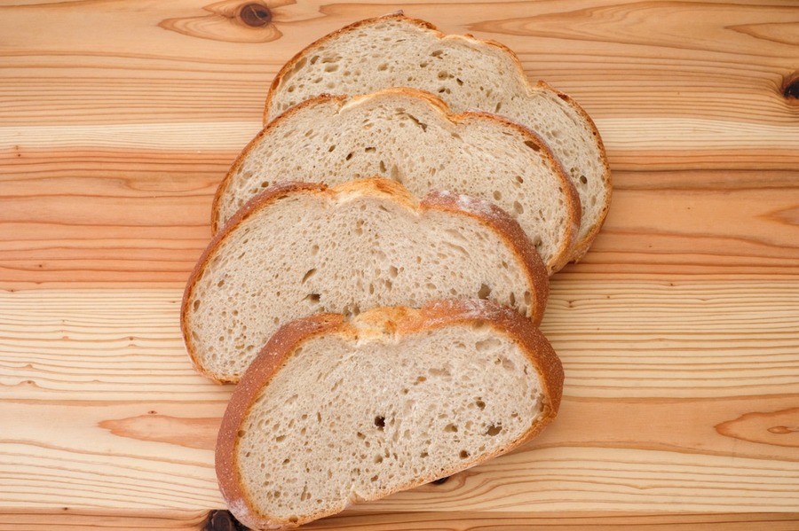 自然解凍後、あらかじめ余熱しておいたオーブンやトースターで温めてお召し上がりください。 パン全体に霧吹きなどで軽く水をかけてからトースターで2分~3分ほど加熱するとさっくり、もっちり出来たてのようになり美味しく召し上がれます。 厚みのあるパンは表面がこげやすいのでアルミホイルをかけて加熱してください。