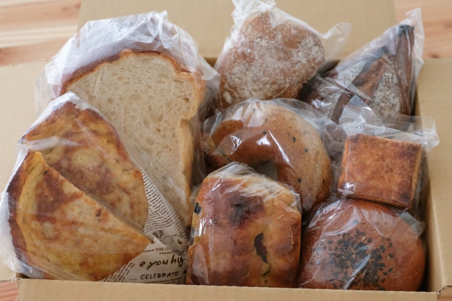60サイズの箱に詰めてお送りします。 (9個以上のパンが入ります)