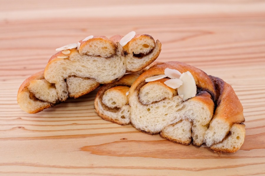 主な原材料:小麦(国産)、ライ麦(国産)、バター(国産)、喜界島の粗糖、塩、酵母、イーストなど 食パン(商品一例):小麦粉(国産)、有機ふすま、バター、砂糖、スキムミルク、酵母、塩、イースト(一部に小麦、乳成分を含む) ※各パンに原材料表示シールを貼付します。
