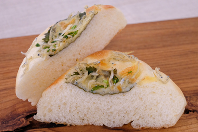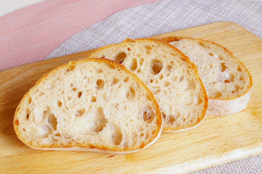 自然解凍後、あらかじめ余熱しておいたオーブンやトースターで温めてお召し上がりください。 パン全体に霧吹きなどで軽く水をかけてからトースターで3分~4分ほど加熱するとさっくり、もっちり出来たてのようになり美味しく召し上がれます。 厚みのあるパンは表面がこげやすいのでアルミホイルをかけて加熱してください。