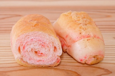 主な原材料:小麦粉、ライ麦、マーガリン、砂糖、塩など ※各パンに原材料表示シールを貼付します。 エビ塩パン(商品一例):小麦粉(アメリカ産)、乳、マーガリン、エビ、砂糖、塩/モルトエキス、乳化剤、香料(原材料に一部小麦、乳、エビを含む)