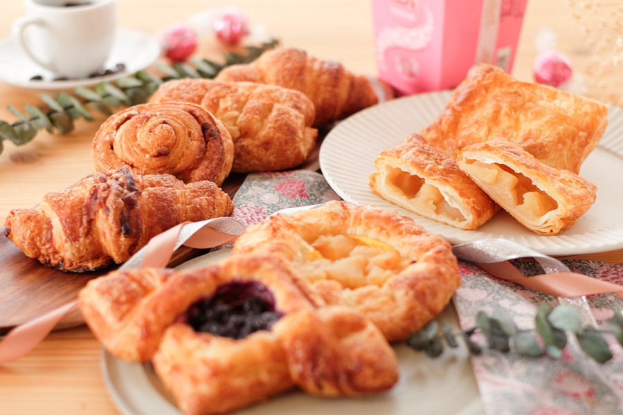主な原材料:小麦粉、卵、牛乳、チーズ、バター、クリームチーズ、いちご、りんご、レモン、チョコレート (一部に小麦、卵、乳成分、くるみを含む) クロワッサン(商品一例):小麦粉、グラニュー糖、よつ葉バター、パン酵母、食塩 ※アレルギーがご心配な方はご遠慮下さい。
