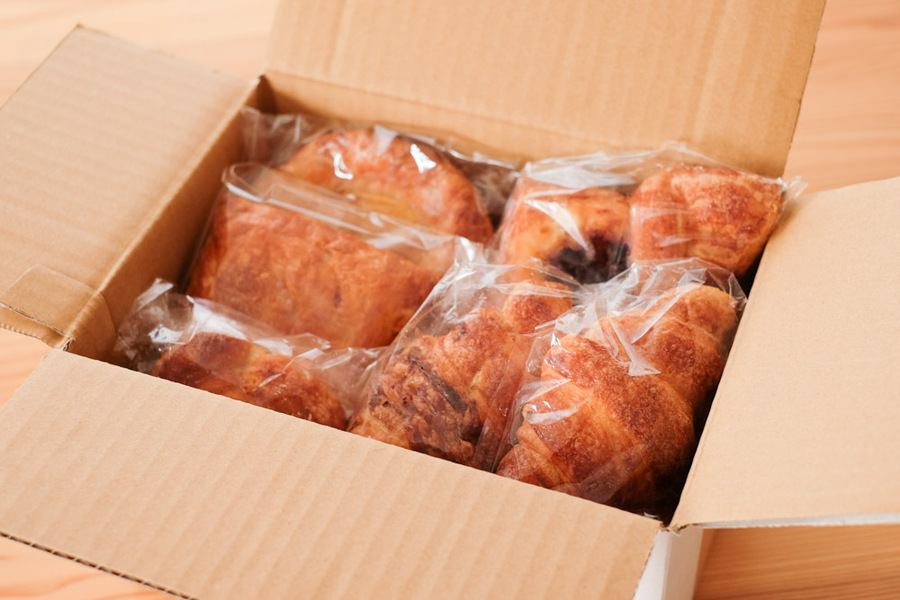 以下の8個のパンと焼き菓子が入ります。 ●クロワッサン ×1 ●チーズクロワッサン ×1 ●ブルーベリーデニッシュ ×1 ●ダークチェリーデニッシュ ×1 ●チョコデニッシュ ×1 ●シナモンロール ×1 ●ラズベリーデニッシュ ●レアチーズデニッシュ のなかから6種類のデニッシュ ●アップルパイ×2