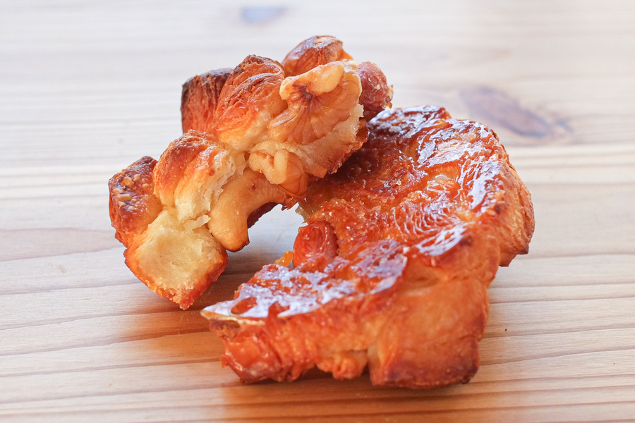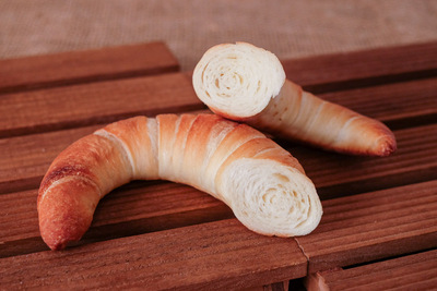 自然解凍後、あらかじめ余熱しておいたオーブンやトースターで温めてお召し上がりください。 パン全体に霧吹きなどで軽く水をかけてからトースターで3分~4分ほど加熱するとさっくり、もっちり出来たてのようになり美味しく召し上がれます。 厚みのあるパンは表面がこげやすいのでアルミホイルをかけて加熱してください。