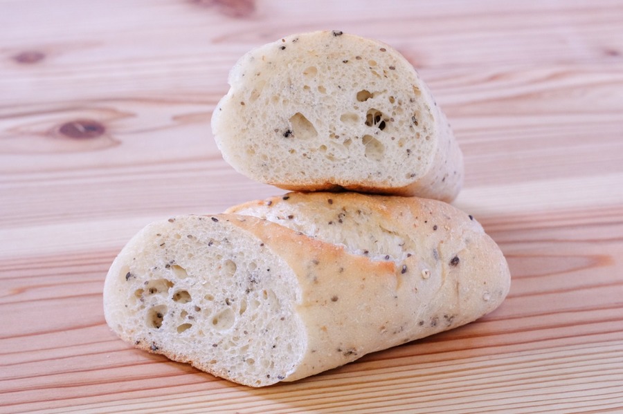自然解凍後、あらかじめ余熱しておいたオーブンやトースターで温めてお召し上がりください。 パン全体に霧吹きなどで軽く水をかけてからトースターで3分~4分ほど加熱するとさっくり、もっちり出来たてのようになり美味しく召し上がれます。 厚みのあるパンは表面がこげやすいのでアルミホイルをかけて加熱してください。