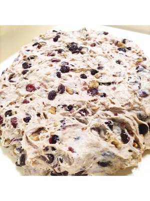 小麦粉に対してなんと136%のフルーツとクルミが入っています