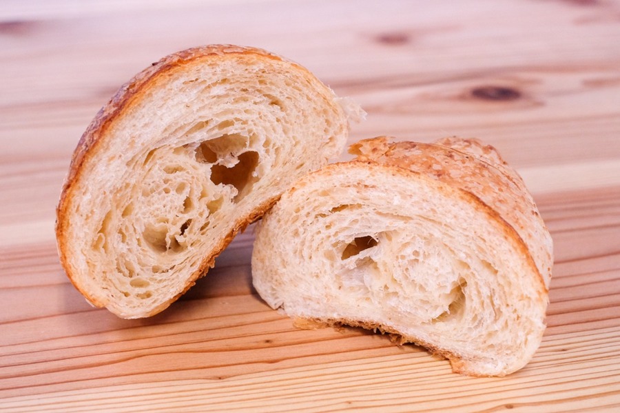 自然解凍後、あらかじめ余熱しておいたオーブンやトースターで温めてお召し上がりください。 パン全体に霧吹きなどで軽く水をかけてからトースターで3分~4分ほど加熱するとさっくり、もっちり出来たてのようになり美味しく召し上がれます。