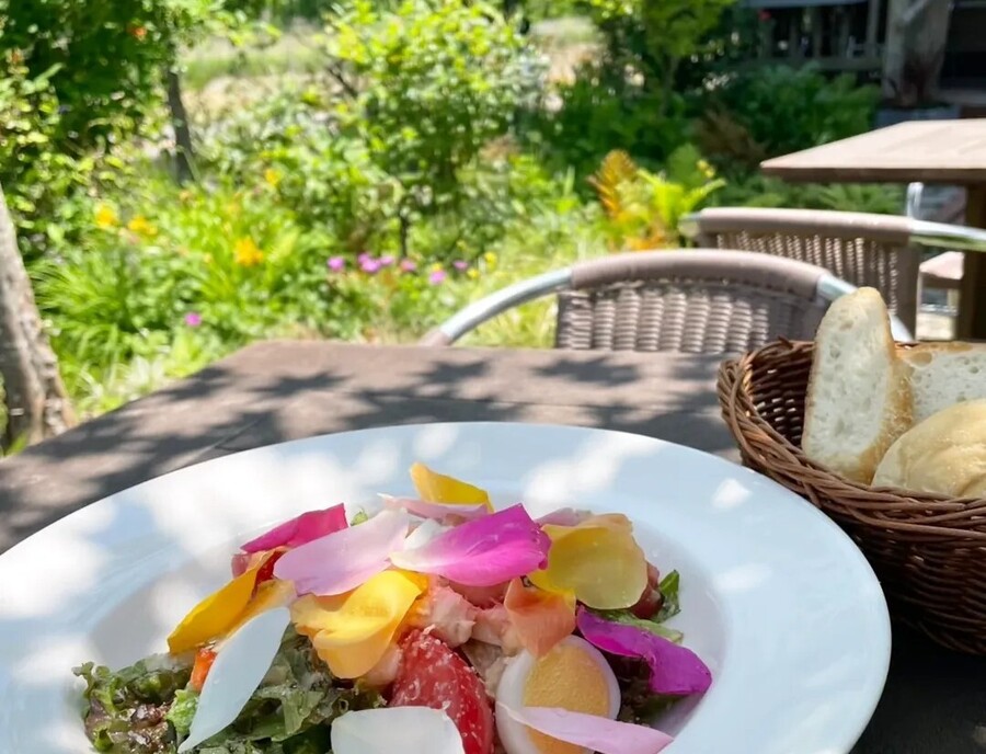 やわらかな木漏れ日と心地よい風に包まれながら、ランチを楽しめます。 自然を感じる開放的な空間で、いつものお昼時間が少し特別なひとときに変わります。
