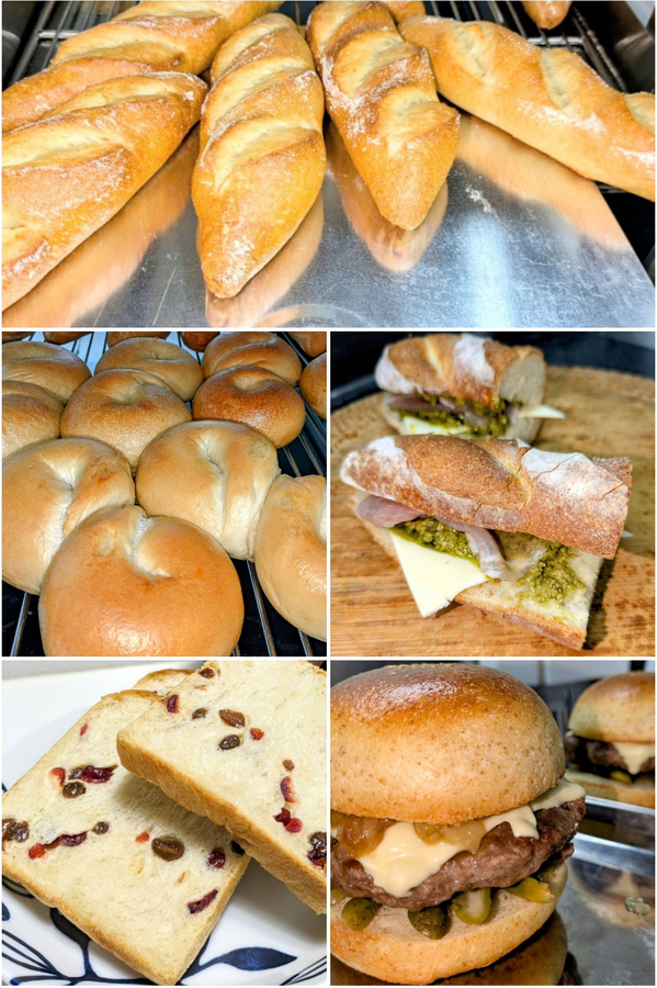 店主は根っからのパン職人ではなく、誰もが知ってるメーカーのエンジニアでした。安全のための法律を学び法律を守って作る、優良誤認を与えるような美辞麗句を並べず誠実に正確な情報を開示することが本当の意味での「食の安全安心」と考えております。 安全:職人の意気込みとカンコツに加えて理論とデータが必要です。商品の食品微生物検査とスタッフの腸内細菌検査は第三者の目でチェックしております。 安心:ハンバーガーには非加熱のピクルスが入っています。よく加熱されたバンズやパティよりリスクは高くなります。当工房内では食品添加物を使用しておりませんが、ピクルス等の原材料メーカーが安全な長期保存に必要と判断した食品添加物は含まれます。これらはキャリーオーバー制度で表示を省略できる場合もありますが、省略することなく原材料表示シールで全て開示しております。